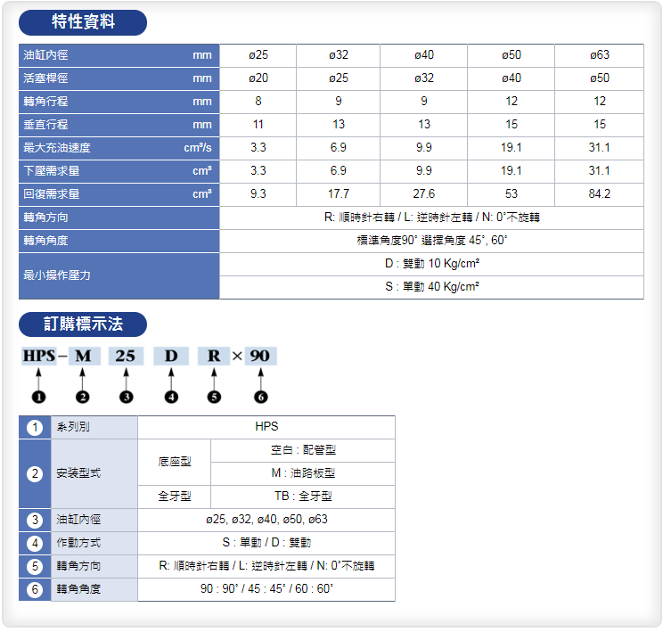 ? Bore : ?25~?63 mm ? Pmax : 500 Kg/cm2